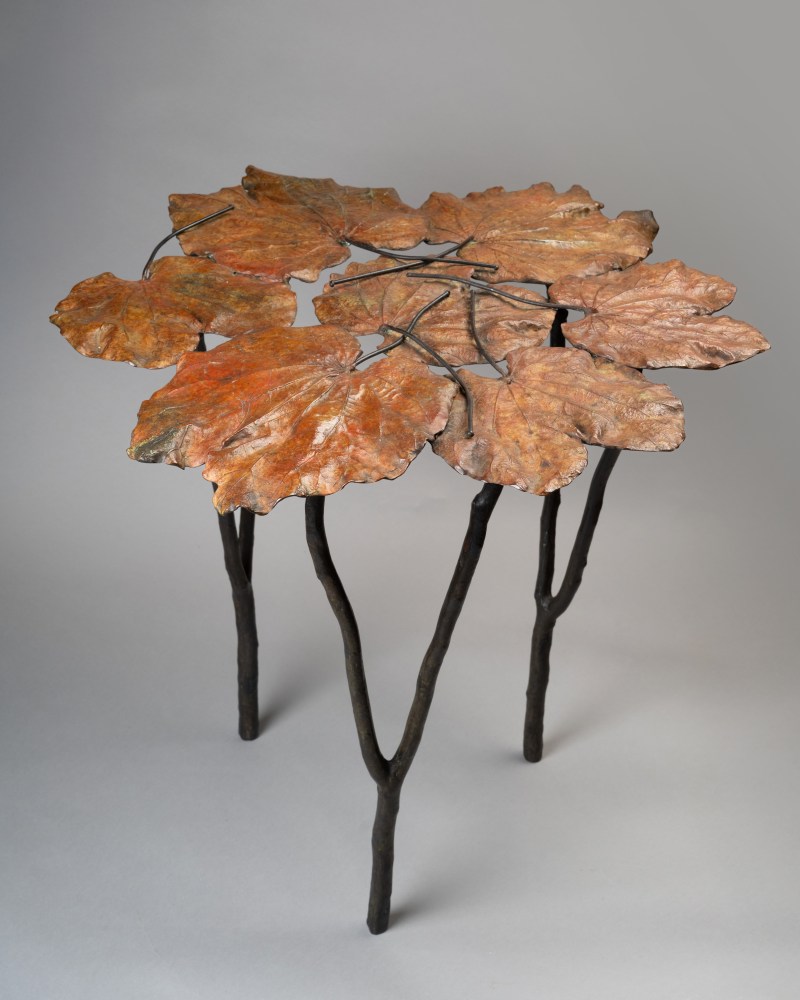 Bronze Coffee Table, From A Pair, With Catalpa Leaves