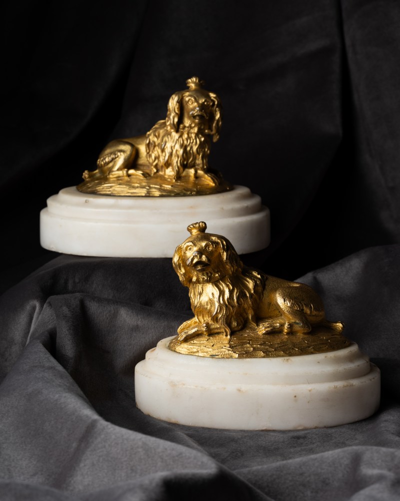 Two Gilt Bronze Dogs Known As Those Of The Marquise De Pompadour