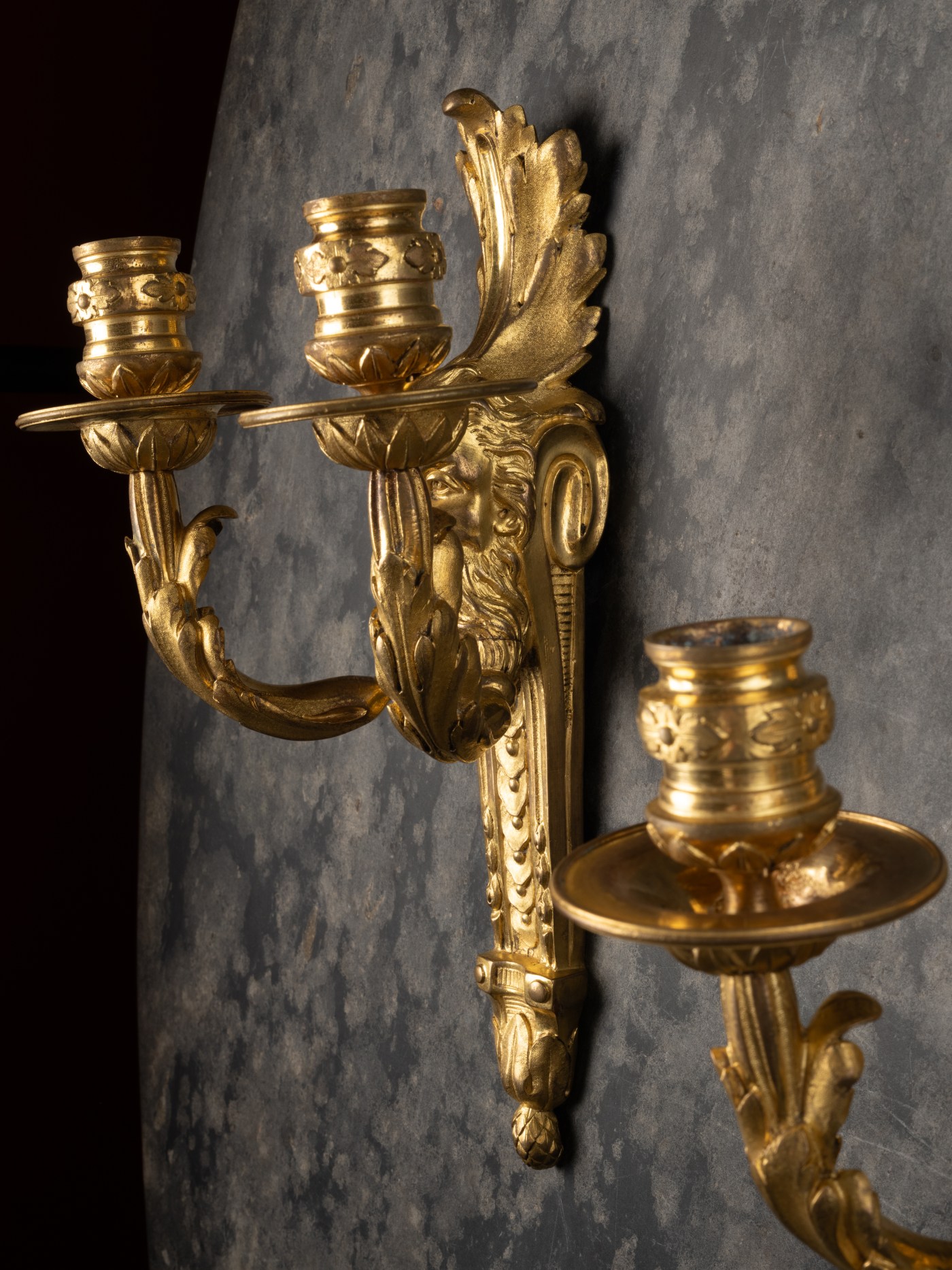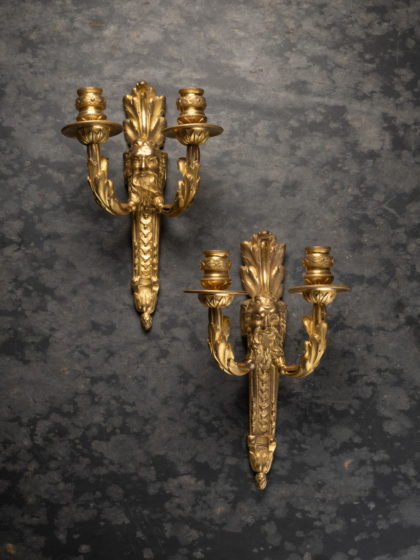 A pair of two Louis XVI wall lights with ‘Faun’ masks.