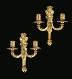 Without taking the risk of attributing it to Jean-Louis Prieur, these stylistic and technical elements, with regards to the mounting and the chasing and the gilding, allow us to date this pair of wall lights in the mid-1770s : the previous models, sold at Christie's, Sotheby's and Artcurial, were dated, with some certainty, in the mid-1760s ; this model, in a purer, more assertive neoclassical style, seems to be some sort of an hyphen between these early Transition models and the beginning of the proper Louis XVI style.