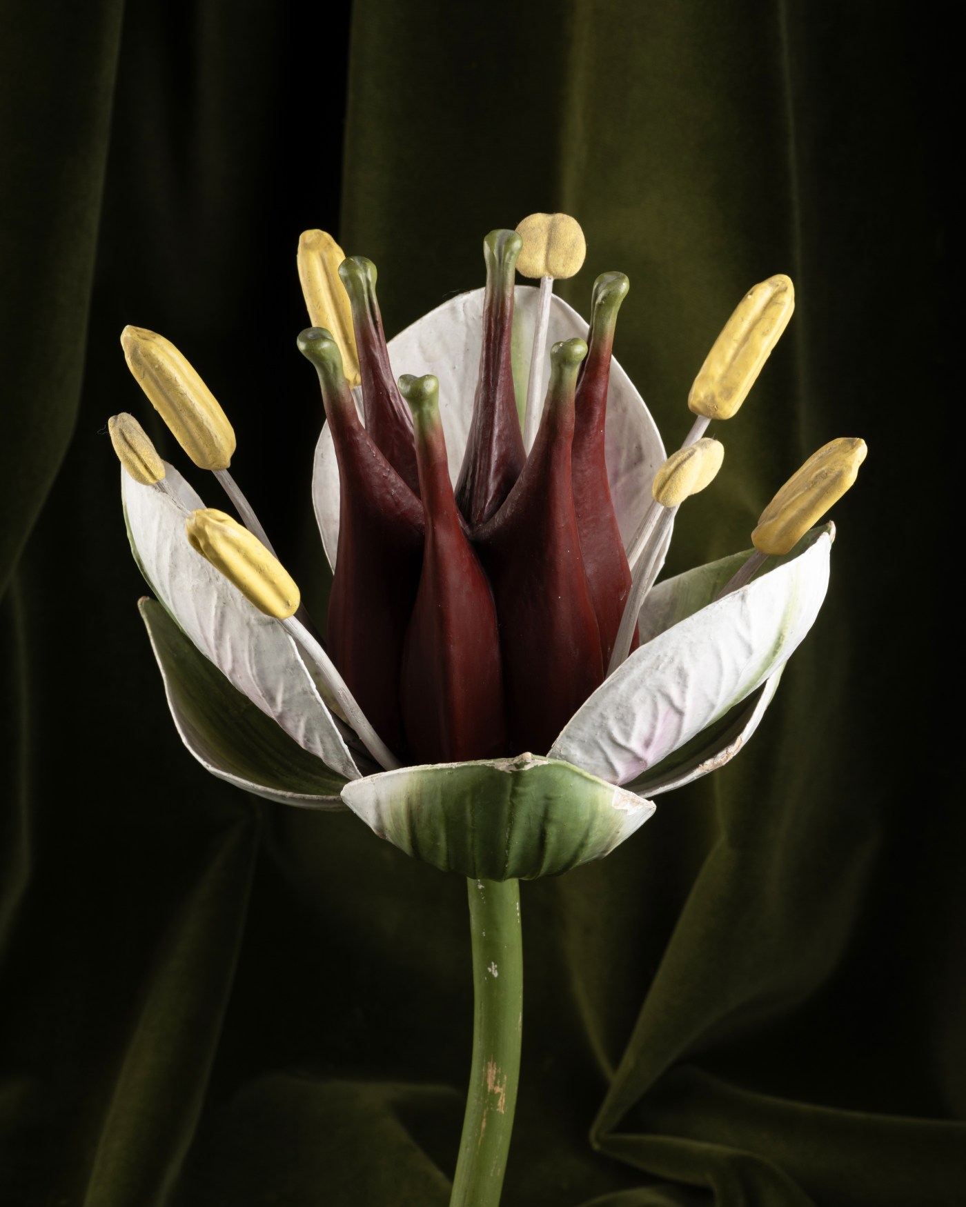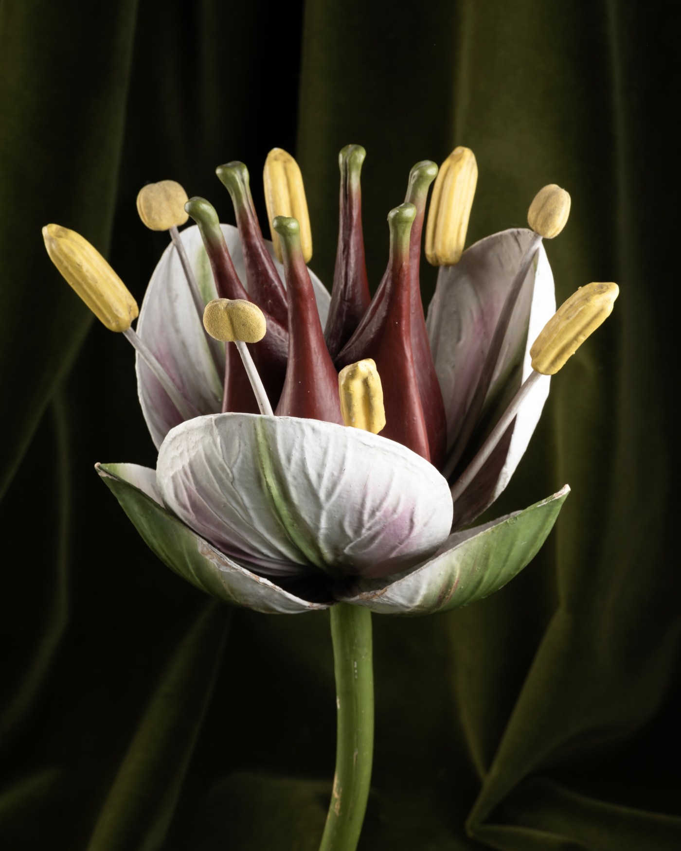 This botanical model, representing a flowering rush (Butomus umbellatus), was designed at the beginning of the 20th century in the workshops of Reinhold Brendel in Grünewald, near Berlin. This small manufactory, originally founded in Breslau in 1866 by Robert Brendel, became renowned as early as the 1870s for the production of so-called "clastic" models. These detachable structures allowed for the study of the internal organization of plants, revealing anatomical and microscopic details invisible to the naked eye on a considerably enlarged scale.