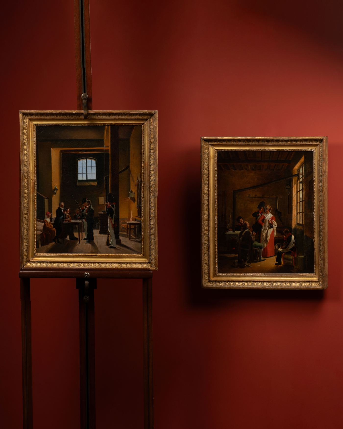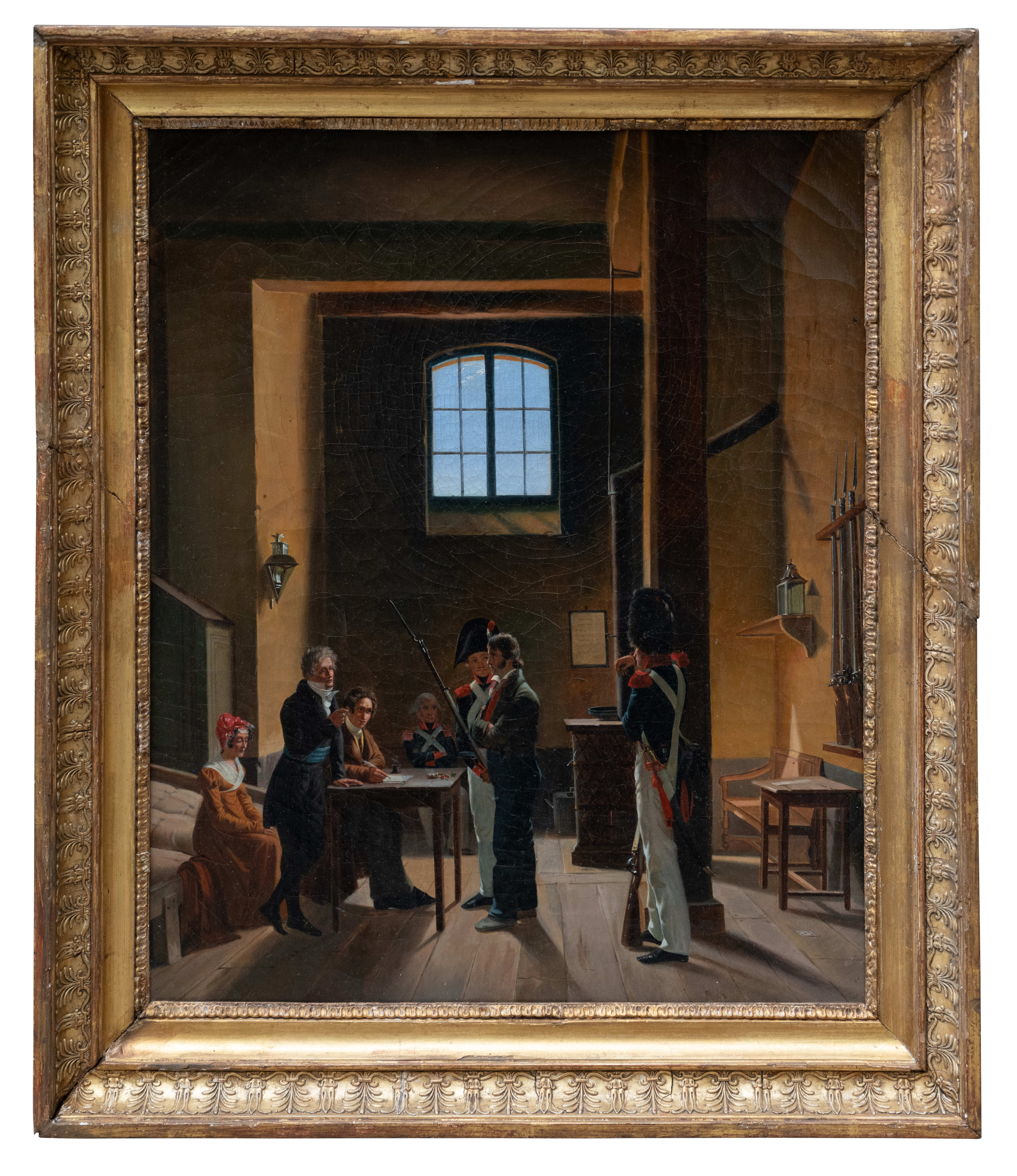 La Marchande d’eau-de-vie au corps de garde and L’Interrogatoire au corps de garde thus bear witness to the taste for genre painting under the Restoration, a broad domain often overshadowed by grand Romantic compositions and history painting. These are also among the earliest preserved works by Duval Le Camus, marked by an almost northern austerity strikingly close to the compositions of Martin Drolling — an austerity that softens, warms, and fades as taste evolves and the painter gains mastery in the decades that follow.