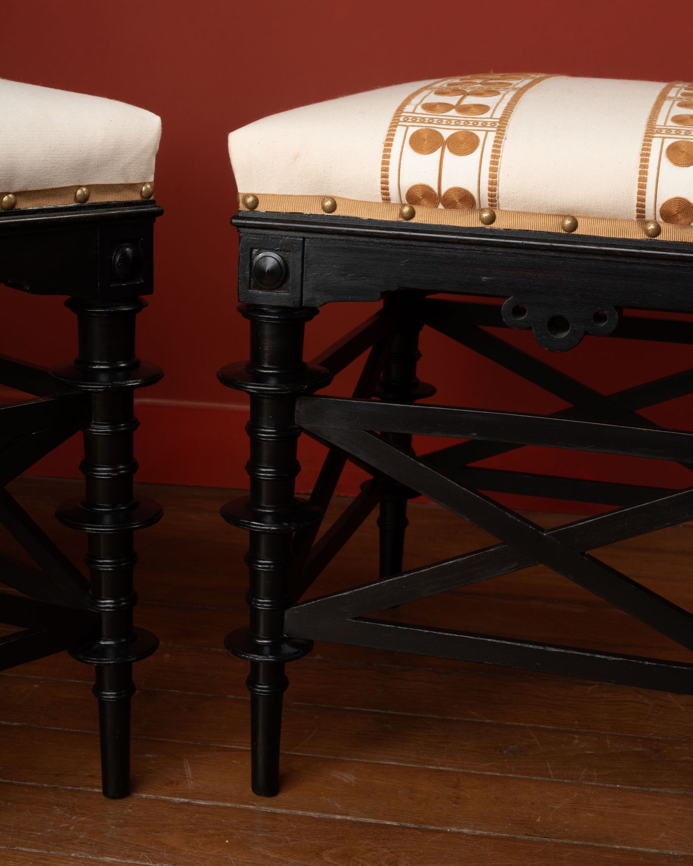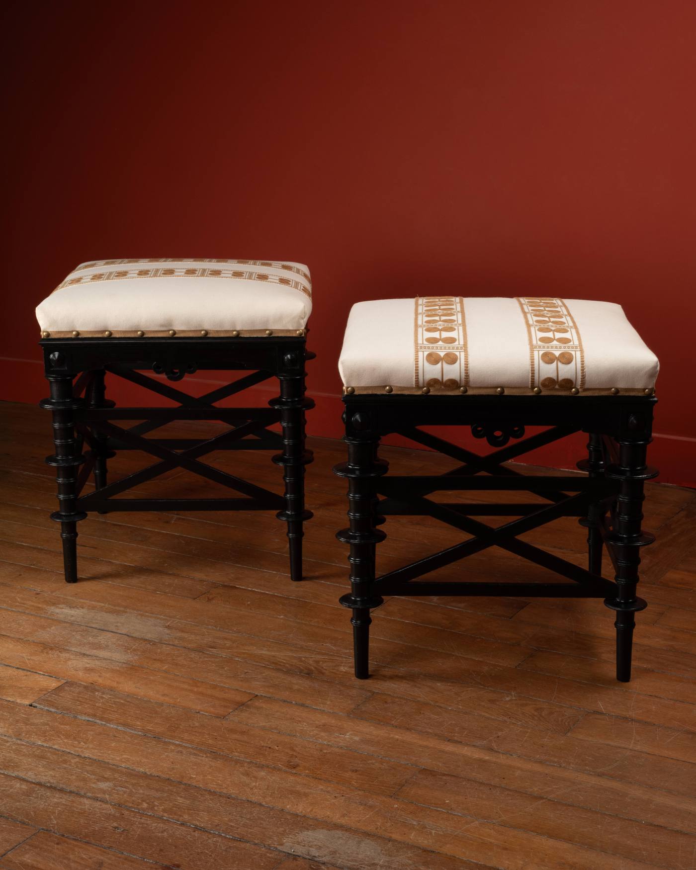 Pair of Neo-Pompeian stools attributed to Charles Rossigneux.