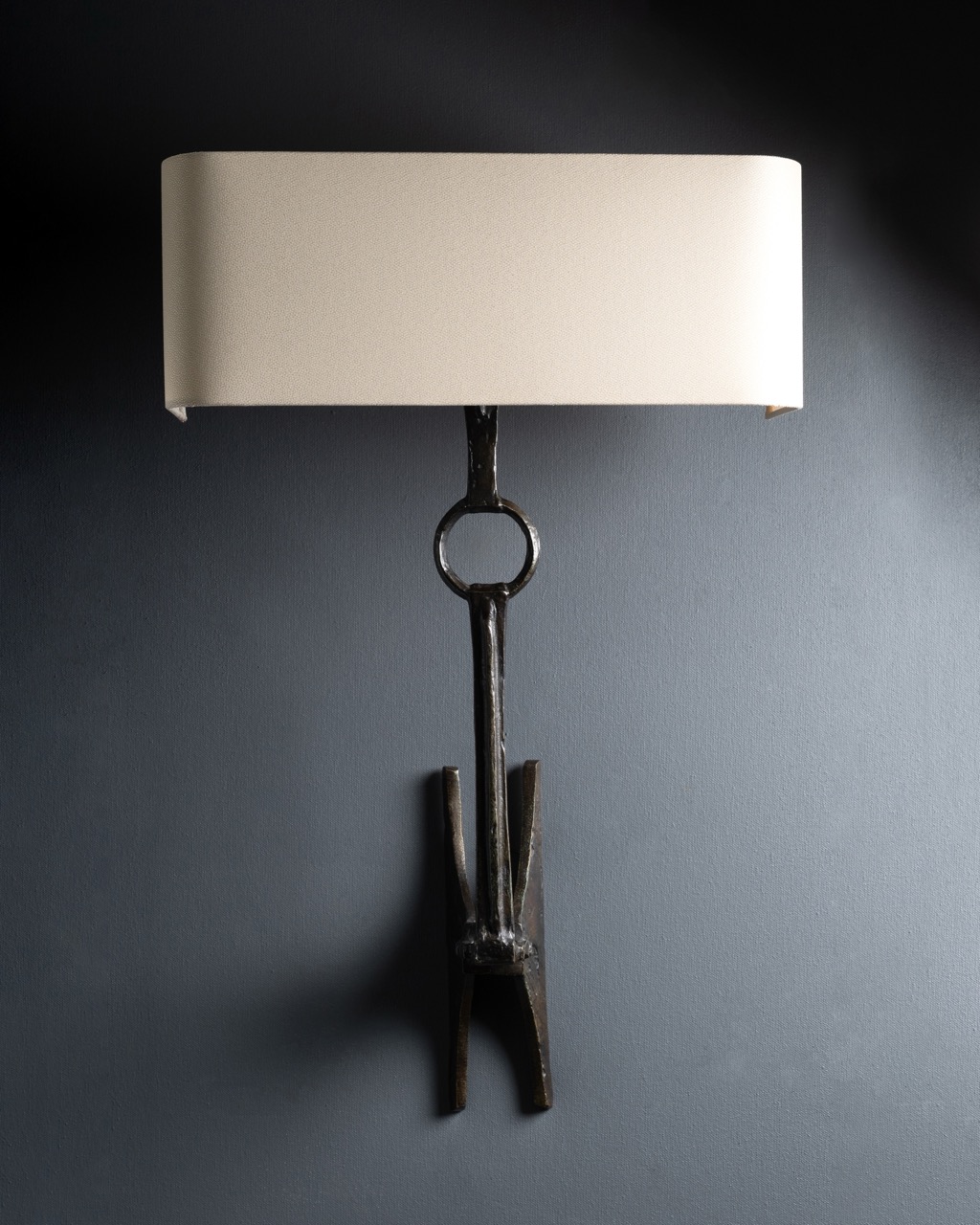 Trained at the École des Beaux-Arts in Paris, Agostini began his career as a sculptor before dedicating himself to lighting design. His early creations, influenced by Art Deco and the modernist style, reveal a preference for organic forms and noble materials such as bronze and brass. During the 1950s and 1960s, he entered a prolific creative period, producing visually striking wall-lights and table lamps. These pieces, with their pure lines and vivid motifs, are not unlike those of Agostini’s illustrious rival Diego Giacometti.