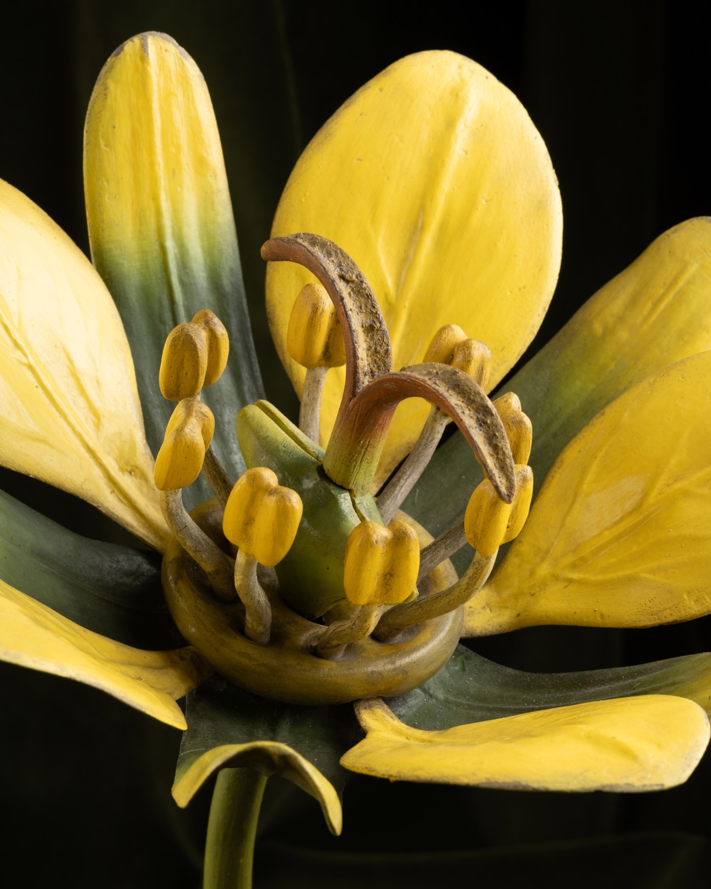 This papier-mâché botanical model represents two maple flowers (Acer campestre), one male and one female. It was designed at the beginning of the 20th century in the workshops of Reinhold Brendel in Grunewald, near Berlin. Originally founded in Breslau in 1866 by Robert Brendel, this small manufactory became famous in the 1870s for producing so-called "clastic" models. These detachable structures allowed for the study of internal plant organization, revealing — on a significantly enlarged scale — anatomical and microscopic details invisible to the naked eye.