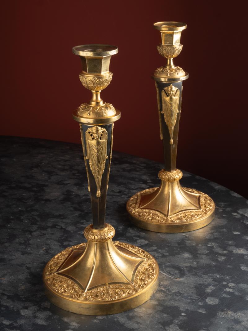 PAIR OF GREEK STYLE CANDLESTICKS – EMPIRE PERIOD