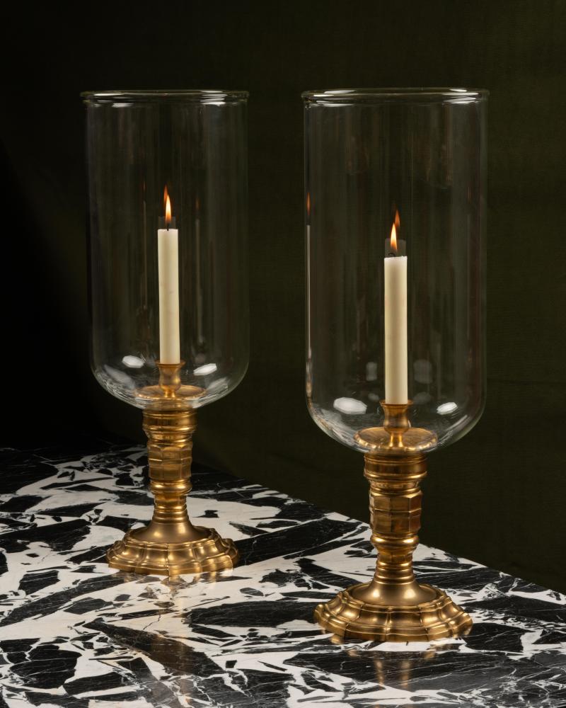 Pair of Silvered Copper Hurricane Glass Regency Candlesticks, early 18th Century
