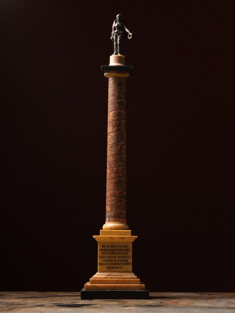 Small-scale replica of the Column of Marcus Aurelius, in bronze and giallo antico